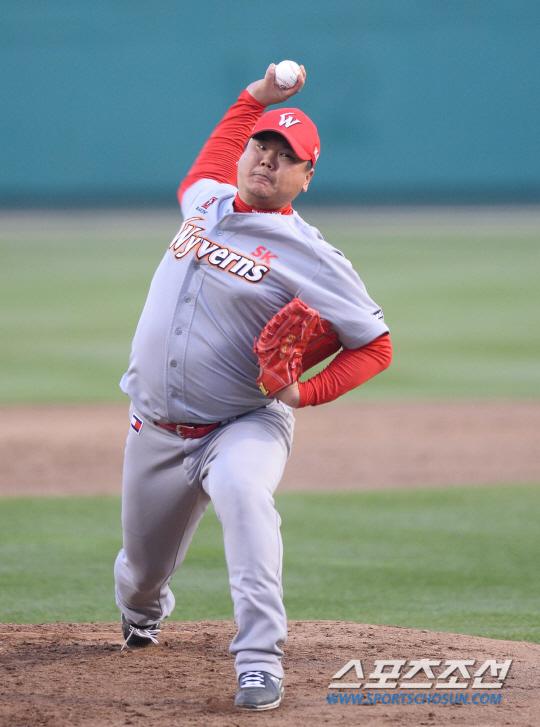 SK 채병용이 5일 부산 롯데전에서 5이닝 2실점으로 호투하며 시즌 첫 선발승을 따냈다. 최문영 기자 deer@sportschosun.com