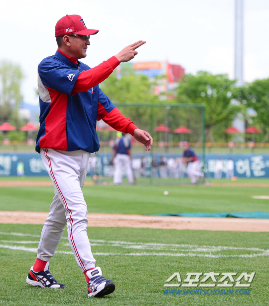 30일 오후 광주 기아챔피언스필드에서 열릴 2015 프로야구 한화와 KIA의 경기에 앞서 KIA 김기태 감독이 한화 덕아웃을 향해 반갑게 인사하고 있다. 광주=김경민 기자 kyungmin@sportschosun.com