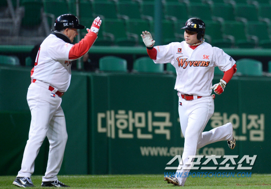 2015 KBO리그 SK와이번즈와 넥센히어로즈의 경기가 16일 인천SK행복드림구장에서 열렸다. SK 6회말 선두타자 김성현이 좌월 솔로홈런을 치고 그라운드를 돌고있다. 인천=최문영 기자 deer@sportschosun.com /2015.04.16/ |