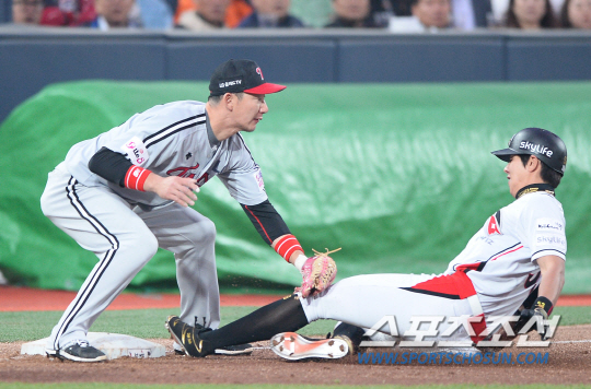 8일 수원 케이티위즈파크에서 KBO리그 kt 위즈와 LG 트윈스의 경기가 열렸다. kt 어윈과 LG 장진용이 선발 맞대결을 펼쳤다. kt 2회 2사 1루에서 이대형이 1타점 2루타를 날렸다. 하지만 3루까지 달리다 태그 아웃을 당하고 있다. 수원=송정헌 기자 songs@sportschosun.com/2015.05.08