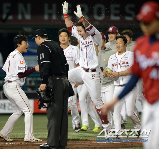 넥센은 4-4로 팽팽한 9회 선두 타자 박병호의 좌중월 솔로 홈런으로 극적인 끝내기 승리를 거뒀다. 박병호는 한승혁의 몸쪽 직구를 전광석화 처럼 받아쳤다.