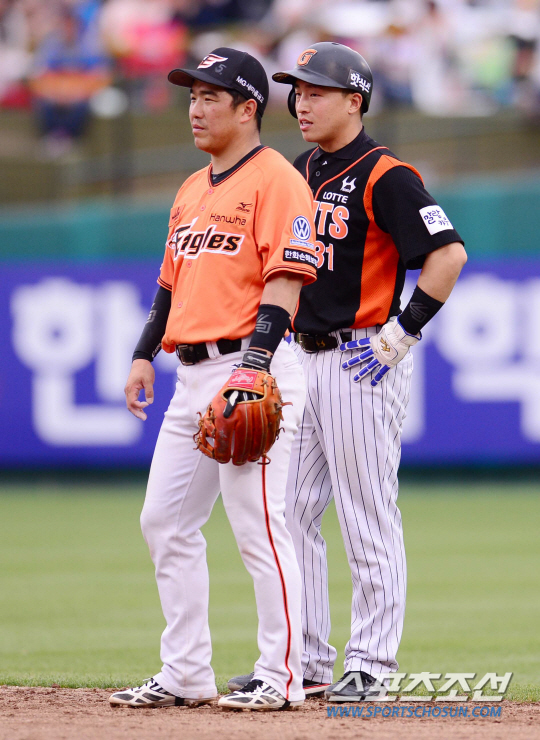 ◇롯데팬들 사이에서 가장 쓸데없는 걱정이 손아섭(오른쪽) 타율 걱정이라는 말이 있는데 손아섭의 타율이 9일현재 2할5푼8리에 그치고 있다. 롯데의 현실을 단적으로 보여준다. 김경민 기자 kyungmin@sportschosun.com