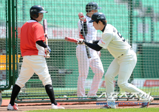 조동화는 이날 선발에서 제외됐다. 대신 동료들에게 이날 삼성 선발 차우찬에 대비해 배팅볼을 던져줬다. 조동화는 "내가 던져주면 선수들이 좋아하더라"면서 "잘 친 선수에게 잘쳤다고 칭찬하면서 던졌다"고 했다.