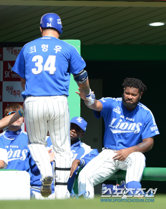 삼성 라이온즈 최형우가 오른쪽 종아리 근육통으로 경기 중간 교체됐다.