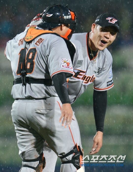 권혁이 친정팀 삼성을 상대로 승리투수가 됐다. 한화 이글스와 삼성 라이온즈의 2015 프로야구 경기가 12일 대구구장에서 열렸다. 한화가 5-4로 앞선 9회말 권혁이 8회에 이어 등판했다. 2사 1루에서 삼성 박찬도를 좌익수 플라이로 잡으며 승리투수가 된 권혁이 허도환 포수와 기쁨을 나누고 있다. 대구=정재근 기자 cjg@sportschosun.com/2015.05.12/