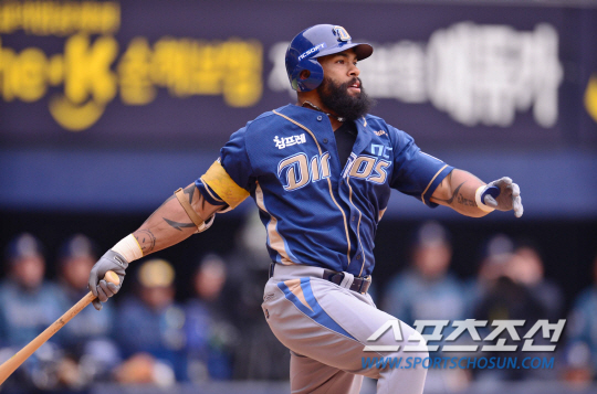17일 오후 서울 잠실야구장에서 2015 프로야구 시범경기 두산과 NC의 경기에 열렸다. 5회초 2사 만루서 NC 테임즈가 3타점 2루타를 치고 있다. 김경민 기자 kyungmin@sportschosun.com / 2015.03.17. |