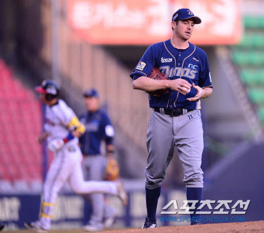 13일 오후 서울 잠실야구장에서 2015 프로야구 NC와 LG의 경기가 열렸다. 1회말 LG 정성훈에게 좌중월 솔로홈런을 허용한 NC 찰리가 아쉬워하고 있다. 잠실=김경민 기자 kyungmin@sportschosun.com
