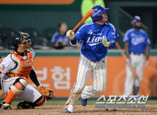 한화와 삼성의 2015 KBO리그 주중 3연전 두번째 경기가 15일 대전 한화생명 이글스 파크에서 열렸다. 3회초 삼성 박한이가 한화 유창식의 투구를 받아쳐 좌측담장을 넘어가는 솔로홈런을 날리고 있다. 대전=허상욱 기자 wook@sportschosun.com