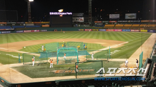 전날에는 포수 조인성과 내야수 정근우 강경학, 외야수 김경언과 이종환이 남아 훈련했다. 조인성과 정근우 강경학 이종환은 이틀 연속 특타조로 그라운드에 남았다.