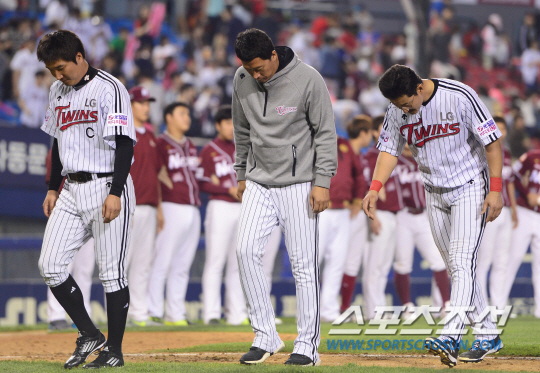 ◇지난 2일 잠실구장에서 KBO리그 LG 트윈스와 넥센 히어로즈의 주말 3연전 두 번째 경기가 열렸다. 넥센이 LG에 4대3으로 승리했다. 4연패를 당한 LG 선수들이 경기 종료 후 아쉬운 표정으로 그라운드를 나서고 있다. 잠실=송정헌 기자 songs@sportschosun.com