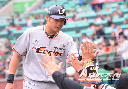한화 이글스 4번 타자 최진행이 호쾌한 솔로 홈런을 날려 추격의 불씨를 살렸다.