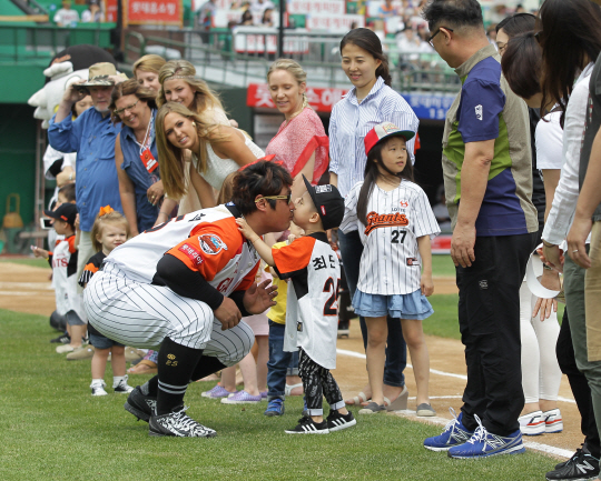 롯데 자이언츠가 24일 사직 홈경기에서 선수단 및 임직원 가족들을 경기장에 초청하여 '패밀리데이' 행사를 실시했다.