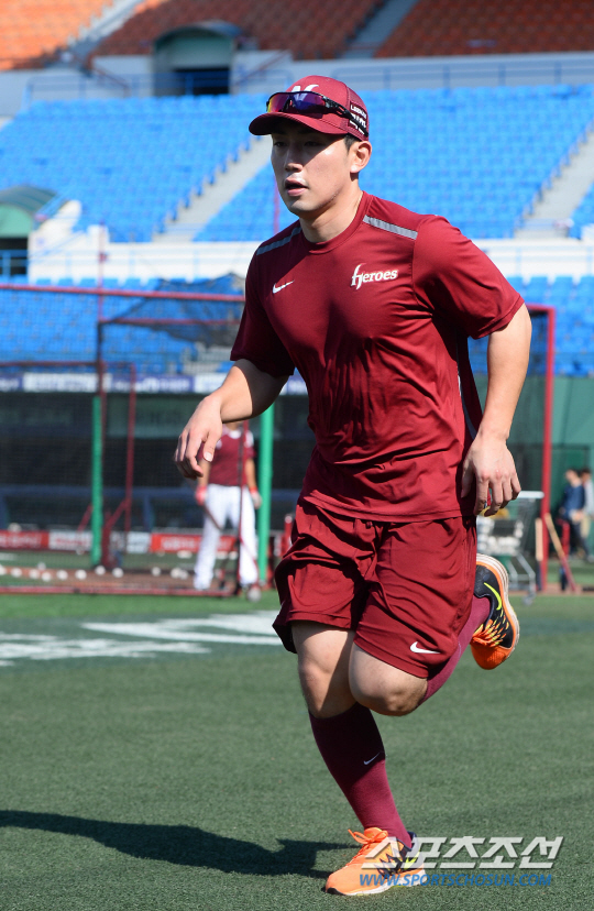 2015 KBO리그 넥센 히어로즈와 LG트윈스의 경기가 20일 서울 목동야구장에서 열렸다. 경기전 부상 치료중인 서건창이 그라운드에서 러닝을 하고 있다. 지난 4월9일 잠실 두산전에서 주루 도중 무릎 십자인대 파열 부상을 입은 서건창은 6월말 복귀를 목표로 재활에 힘쓰고 있다. 문학=최문영 기자 deer@sportschosun.com /2015.05.19