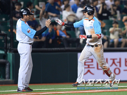 2015 KBO리그 롯데자이언츠와 한화이글스의 경기가 29일 울산 문수야구장에서 열렸다. 롯데 8회말 선두타자 오승택이 좌중월 솔로홈런을 치고 홈인하고 있다. 울산=최문영 기자 deer@sportschosun.com