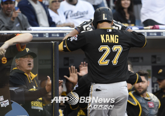 지난 29일(한국시각) 샌디에이고전에서 스리런포로 시즌 3호 홈런을 터뜨린 피츠버그 파이어리츠의 강정호. ⓒAFPBBNews = News1