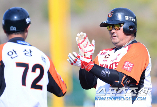 2015 KBO리그 롯데자이언츠와 한화이글스의 경기가 31일 울산 문수야구장에서 열렸다. 롯데 최준석이 롯데 6회말 2사 2루에서 1타점 적시안타를 치고 있다. 울산=최문영 기자 deer@sportschosun.com /2015.05.31/