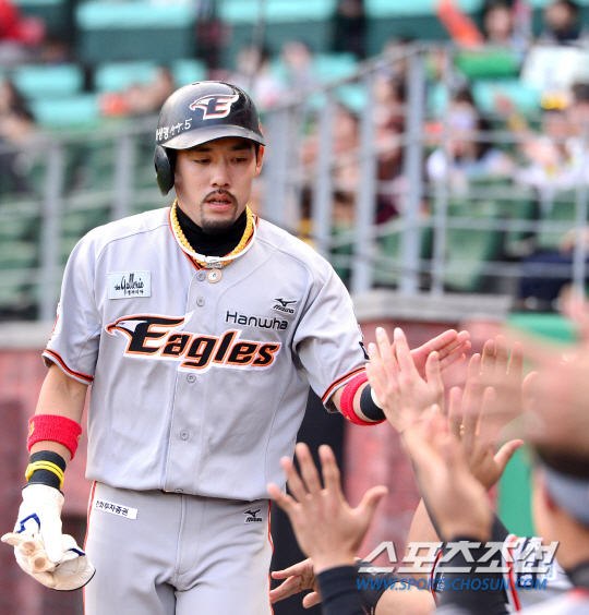 21일 인천 SK행복드림구장에서 KBO리그 SK와 한화의 주중 3연전 마지막 경기가 열렸다. SK가 한화에 시리즈 2승을 기록중이다. 한화 1회 무사 1,3루에서 정근우의 내야땅볼 타구 때 3루주자 이용규가 득점에 성공했다. 덕아웃에서 하이파이브를 나누고 있는 이용규. 인천=송정헌 기자 songs@sportschosun.com