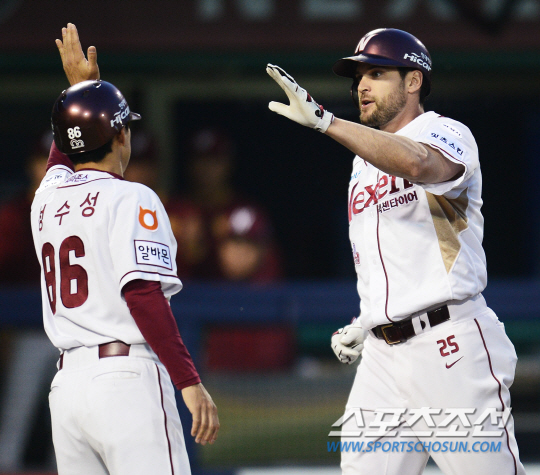 스나이더는 2일 목동구장에서 열린 한화 이글스와의 홈경기에 3번-우익수로 선발출전해 5회 투런포를 쏘아올렸다. 3-5로 뒤진 5회말 1사 1루서 상대 선발 배영수의 5구째 바깥쪽 직구를 받아쳐 가운데 담장을 넘겼다.