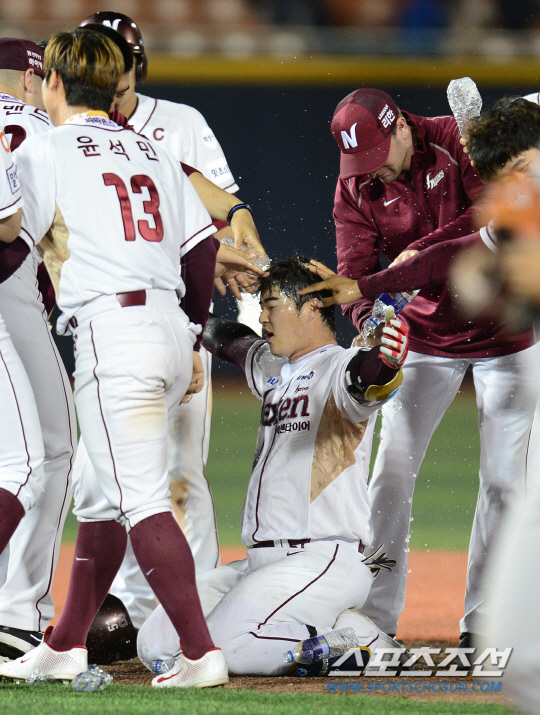 7-7 동점, 치열하게 점수를 뽑던 양팀은 8회 이후 점수를 내지 못했다. 연장에 돌입한 승부, 승리의 여신은 넥센을 향해 미소지었다. 연장 11회말 선두타자 윤석민이 좌전안타로 출루했다. 대주자 유재신이 투입됐고, 김하성이 번트 작전을 실패하고 삼진 아웃. 하지만 유재신이 2루 도루를 성공시켜 1사 2루가 됐다.