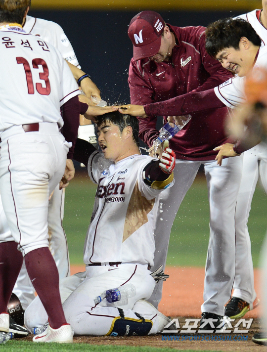 7-7 동점, 치열하게 점수를 뽑던 양팀은 8회 이후 점수를 내지 못했다. 연장에 돌입한 승부, 승리의 여신은 넥센을 향해 미소지었다. 연장 11회말 선두타자 윤석민이 좌전안타로 출루했다. 대주자 유재신이 투입됐고, 김하성이 번트 작전을 실패하고 삼진 아웃. 하지만 유재신이 2루 도루를 성공시켜 1사 2루가 됐다.