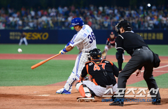 2일 오후 포항야구장에서 2015 프로야구 롯데와 삼성의 경기가 열렸다. 8회말 1사 만루서 삼성 이승엽이 우중간 펜스를 맞추는 2루타를 치고 있다. 포항=김경민 기자 kyungmin@sportschosun.com / 2015.06.02. |