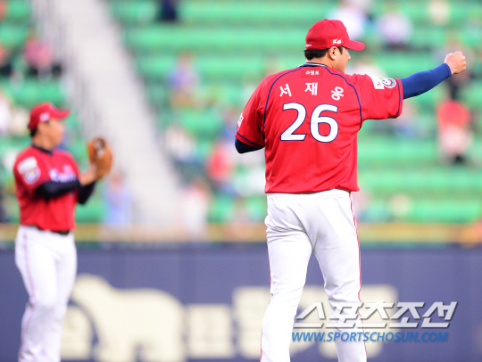 6월 2일 잠실구장에서 KBO리그 두산과 KIA의 경기가 열렸다. KIA 서재응과 두산 니퍼트가 선발 맞대결을 펼쳤다. 3회 두산 김재환의 내야 땅볼 타구를 최용규 2루수가 호수비로 잡아 아웃시키자 감사의 표시를 건내고 있는 서재응. 잠실=송정헌 기자 songs@sportschosun.com/2015.06.02