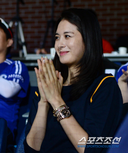 3일 오후 포항야구장에서 2015 프로야구 롯데와 삼성의 경기가 열렸다. 5회말 삼성 이승엽이 타석에 들어서자 부인 이송정이 박수치고 있다. 포항=김경민 기자 kyungmin@sportschosun.com