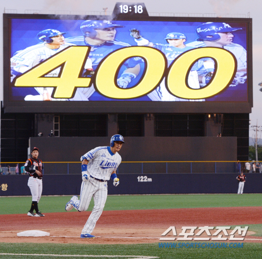 3일 오후 포항야구장에서 2015 프로야구 롯데와 삼성의 경기가 열렸다. 3회말 2사서 삼성 이승엽이 통산 400홈런을 친 후 3루를 돌고 있다. 포항=김경민 기자 kyungmin@sportschosun.com