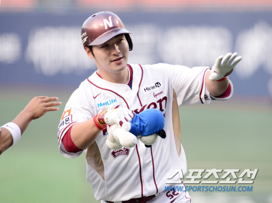 LG 트윈스와 넥센 히어로즈의 2015 프로야구 경기가 19일 목동구장에서 열렸다. 1회말 2사 1루 넥센 박병호가 LG 소사를 상대로 좌중월 투런포를 치고 들어오며 축하를 받고 있다. 목동=정재근 기자 cjg@sportschosun.com/2015.05.19/