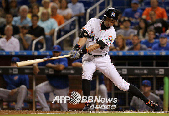 | 4일 시카고 컵스전에서 타격을 하고 있는 마이애미의 이치로. ⓒAFPBBNews = News1 |