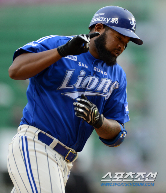 LG와 삼성의 2015 KBO 리그 주말 3연전 첫번째 경기가 29일 잠실구장에서 열렸다. 삼성 나바로가 3회초 LG 류제국의 투구를 받아쳐 중견수 뒤 담장을 넘어가는 솔로홈런을 날렸다. 베이스를 돌며 기쁨을 나누는 나바로. 잠실=허상욱 기자 wook@sportschosun.com