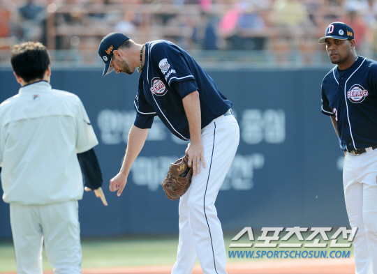 두산 니퍼트의 경우 아직 정밀검사를 받아봐야 한다. 하지만 마운드에서 물러난 뒤 임시 검사에서 별다른 이상 현상을 발견하지 못했다. 단지, 오른팔 윗쪽 뒷부분이 약간 결리는 증상이 있다는 두산 측의 얘기다.
