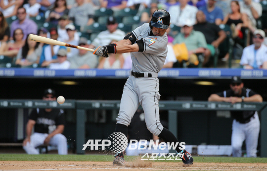 마이애미 말린스의 스즈키 이치로가 8일(이하 한국시각) 미국 콜로라도주 덴버 쿠어스필드에서 열린 콜로라도 로키스전에 대타로 출전에 무안타에 그쳤다. 8회 대타로 나선 이치로는 3루 땅볼로 물러났다. 최근 대타로 출전한 3경기에서 모두 무안타다.