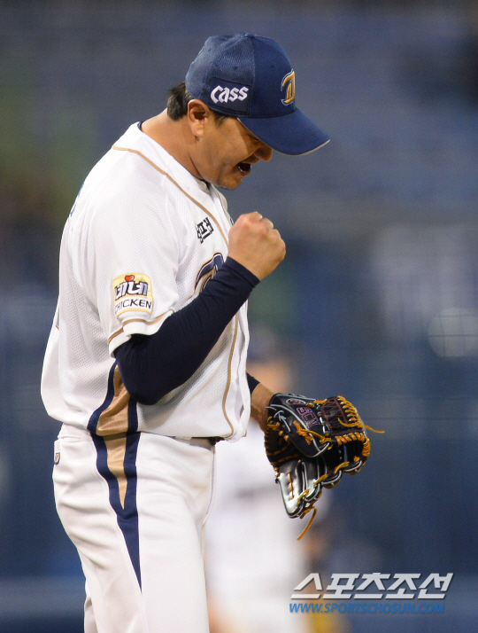 ◇NC손민한. 지난달 28일 창원 마산야구장에서 열린 두산전. 선발로 나선 손민한이 6회초 2사 1,2루에서 양의지를 범타처리 한후 주먹을 불끈쥐고 있다. 손민한은 해커를 따돌리고 NC의 올스타전 선발 후보가 됐다. 마산=최문영 기자 deer@sportschosun.com
