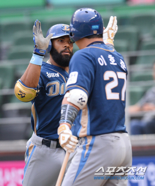 테임즈는 전날 SK전에서도 홈런을 터뜨리는 등 2경기 연속 대포를 가동하며 시즌 21호째를 기록했다. 홈런 단독 선두. 앞선 1회초 타석에서도 땅볼로 3루주자를 불러들인 테임즈는 타점도 64개로 늘리며 동료인 이호준과 함께 이 부문 공동 선두로 올라섰다.