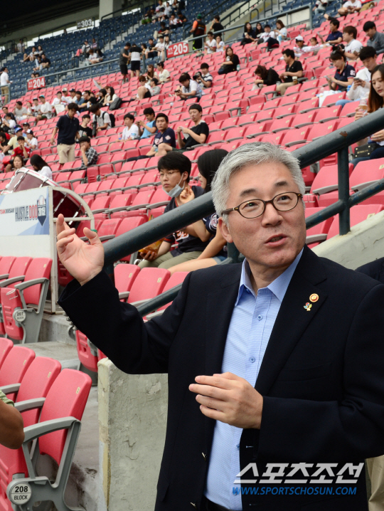 김종덕 문화체육관광부 장관이 메르스(중동호흡기증후군) 관련 스포츠 현장 점검을 위해 야구장을 찾았다.