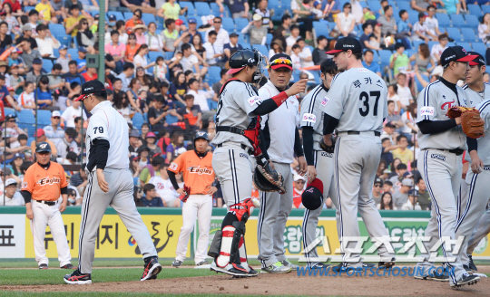 LG는 최근 경기 작전에서도 시즌 초반과는 다른 장면을 연출하고 있다. 16일 잠실 KIA전 3-4로 뒤진 9회 마지막 공격, 1사 주자 1루에서 희생번트(백창수)를 선택했다. 아웃카운트 하나를 희생하더라도 주자를 득점권에 보내놓고 상대 투수를 압박하는 전술을 선택했다. 박용택이 삼진을 당하면서 결국 그 작전은 통하지 않았다.