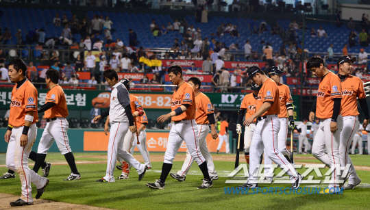 특히 한화가 3-5로 추격하던 3회말 2사 1,2루 때 나온 문승훈 구심의 볼판정이 아쉬웠다. 대타 김태완을 상대로 LG 투수 임정우가 볼카운트 2S에서 던진 커브가 무릎 밑에서 잡혔는데 문 심판이 스트라이크를 선언했다. 김성근 감독이 격노해서 뛰쳐나왔지만, 번복될 수 없는 부분이었다. 추격의 흐름이 끊긴 장면.