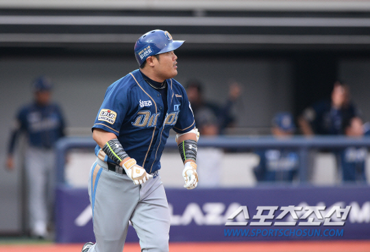 18일 수원 케이티위즈파크에서 KBO리그 kt 위즈와 NC 다이노스의 경기가 열렸다. kt가 NC에 2연승하면 시리즈 스윕승에 도전한다. kt 정성곤과 NC 손민한이 선발 맞대결을 펼쳤다. 1회 무사 2루에서 NC 이호준이 개인통산 300호 홈런포를 날렸다. 타구를 바라보고 있는 이호준. 수원=송정헌 기자 songs@sportschosun.com