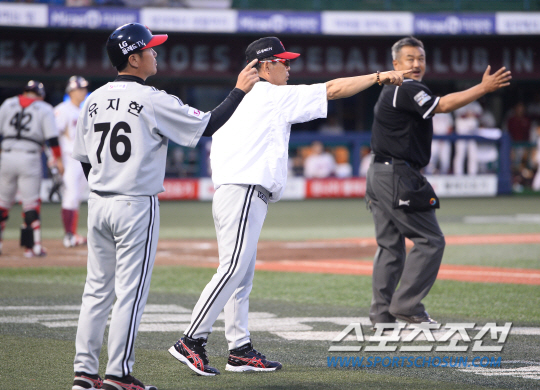 그런데 최근 그는 시즌 초반과 달리 적극적으로 움직인다. 경기별로 중요한 순간마다 코치들에게 맡기지 않고 직접 선수에게 상황에 맞는 주문을 한다. 21일 넥센전 때도 6회 타석에 들어가는 이병규에게 다가가 대화를 나눴다. 그런데 이병규는 번트를 시도했고 3루수 뜬공으로 아웃되고 말았다.