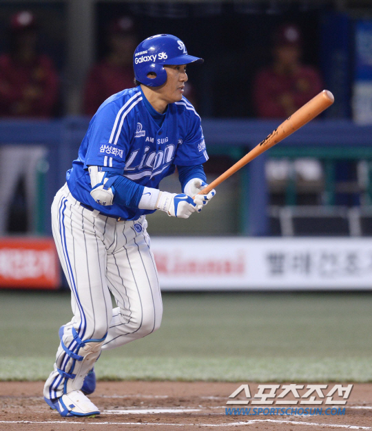 2015 KBO리그 넥센히어로즈와 삼성라이온즈의 경기가 7일 서울목동야구장에서 열렸다. 삼성 2회초 무사 1,2루에서 이승엽이 1타점 적시안타를 치고 있다. 목동=최문영 기자 deer@sportschosun.com