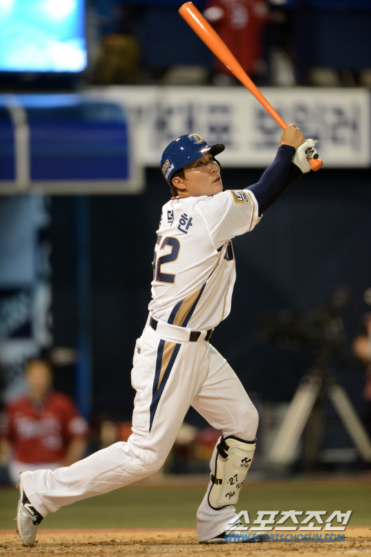 NC 다이노스 용덕한이 이적 첫 경기, 첫 타석에서 안타를 때렸다.