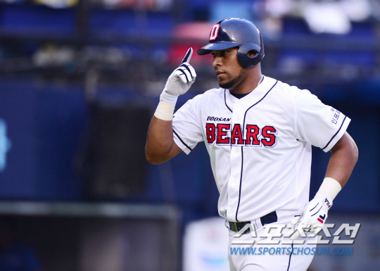 | 2015 프로야구 두산과 SK의 주중 3연전 첫 경기가 23일 잠실 야구장에서 펼쳐 졌다. 두산 4번타자 로메로가 3회 선두타자로 나와 좌월 솔로 홈런을 터뜨리고 세리머니를 하고 있다. 잠실=조병관기자 rainmaker@sportschosun.com |