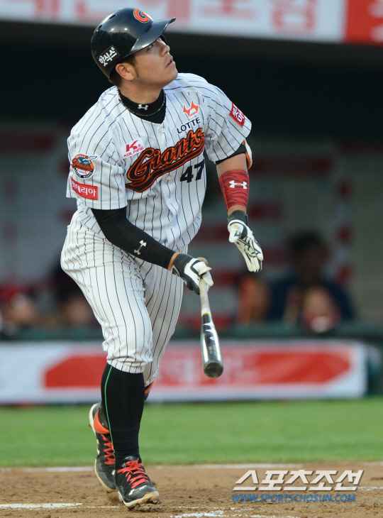 삼성의 네번째 투수인 김현우를 상대한 강민호는 볼카운트 1S에서 2구째 144㎞의 직구가 가운데로 몰리자 힘껏 스윙했고 타구는 좌측 담장을 쉽게 넘어갔다.