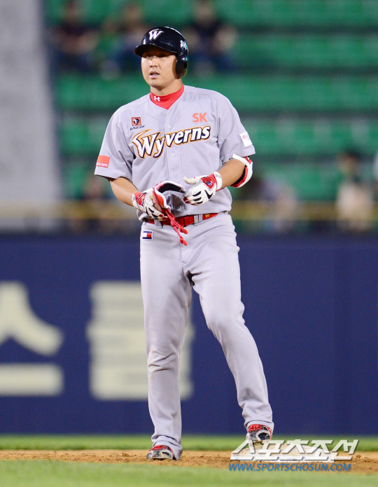 | ◇아직은 최정이라는 이름값에 턱없이 모자란 성적이다. 지난 24일 서울 잠실야구장에서 2015 프로야구 SK와 두산의 경기가 열렸다. 8회초 2사 2루서 SK 최정이 좌중간 안타를 친 후 2루서 타임아웃을 요청하고 있다.잠실=김경민 기자 kyungmin@sportschosun.com / 2015.06.24. |