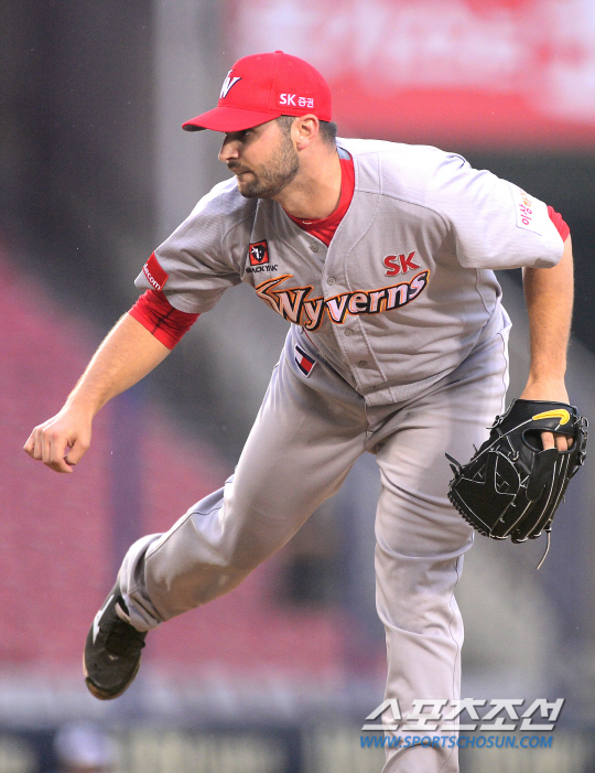SK 외국인 투수 트래비스 밴와트가 비가 내리는 열악한 날씨 속에서 승리투수 요건을 갖추고 마운드를 내려갔다.