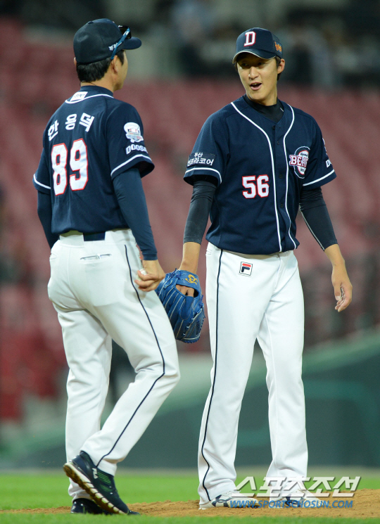 이날 허준혁의 최고구속은 136㎞였다. 마치 팀동료 유희관과 비슷한 인상을 준다. 김태형 감독은 "허준혁의 공이 좀 더 빠르다"는 농담을 던지기도 했다.