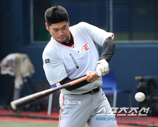 | 한화 이글스와 NC 다이노스의 2015 프로야구 주말 3연전 마지막 경기가 21일 마산구장에서 열린다. 경기 전 한화 최진행이 타격 훈련을 하고 있다. 창원=정재근 기자 cjg@sportschosun.com/2015.06.21/ |