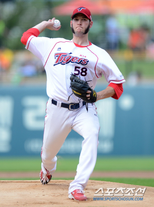 스틴슨은 28일 광주 두산전에서 선발등판, 막강한 두산 타선을 8이닝 3피안타 2탈삼진 2볼넷 1실점으로 꽁꽁 묶었다.