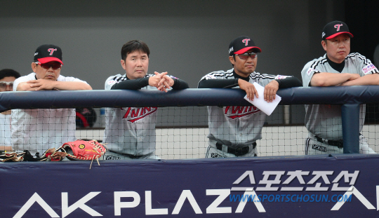 LG 트윈스와 KT 위즈의 2015 프로야구 주중 3연전 2차전이 24일 수원 KT위즈파크에서 열렸다. LG 양상문 감독, 유지현, 박종호, 차명석 코치가 경기를 지켜보고 있다. LG는 선발투수로 올시즌 1승 5패 방어율 5.34의 임정우를 내세웠다. KT에서는 3승 5패 방어율 2.98의 정대현이 선발투수로 나섰다. 수원=정재근 기자 cjg@sportschosun.com/2015.06.24/